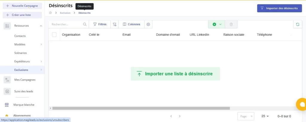- Automatic unsubscription management: When your recipients click on the unsubscribe link, Magileads automatically marks them as “unsubscribed” in your database .