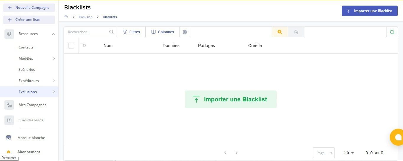 - Ajoutez manuellement ou importez les adresses email que vous souhaitez bloquer pour vos prochaines campagnes.